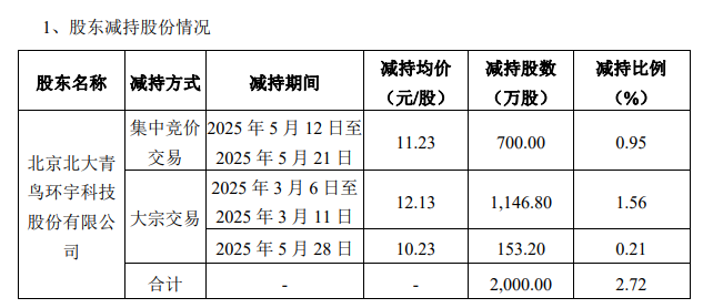 按减持均价计算,北大青鸟环宇合计减持套现23338.92万元。